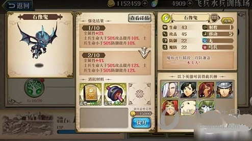 法娜在黑暗轮回阵营的辅助输出能力相当不错,不过需要消耗2颗魔导石,建议后续使用时再做考虑。兵种选择方面,由于法娜主要依靠瞄准、万箭、风压进行输出,且需要近身作战,石像鬼是比较合适的选择:一方面它没有克制关系,能保障一定的生存能力;另一方面,生命值在50%以上时有攻击加成,低于50%时防御会提升,可谓攻守兼备。要是石像鬼的练度不够,也可以选用自己已练到较高等级的吸血蝙蝠或天空射手。