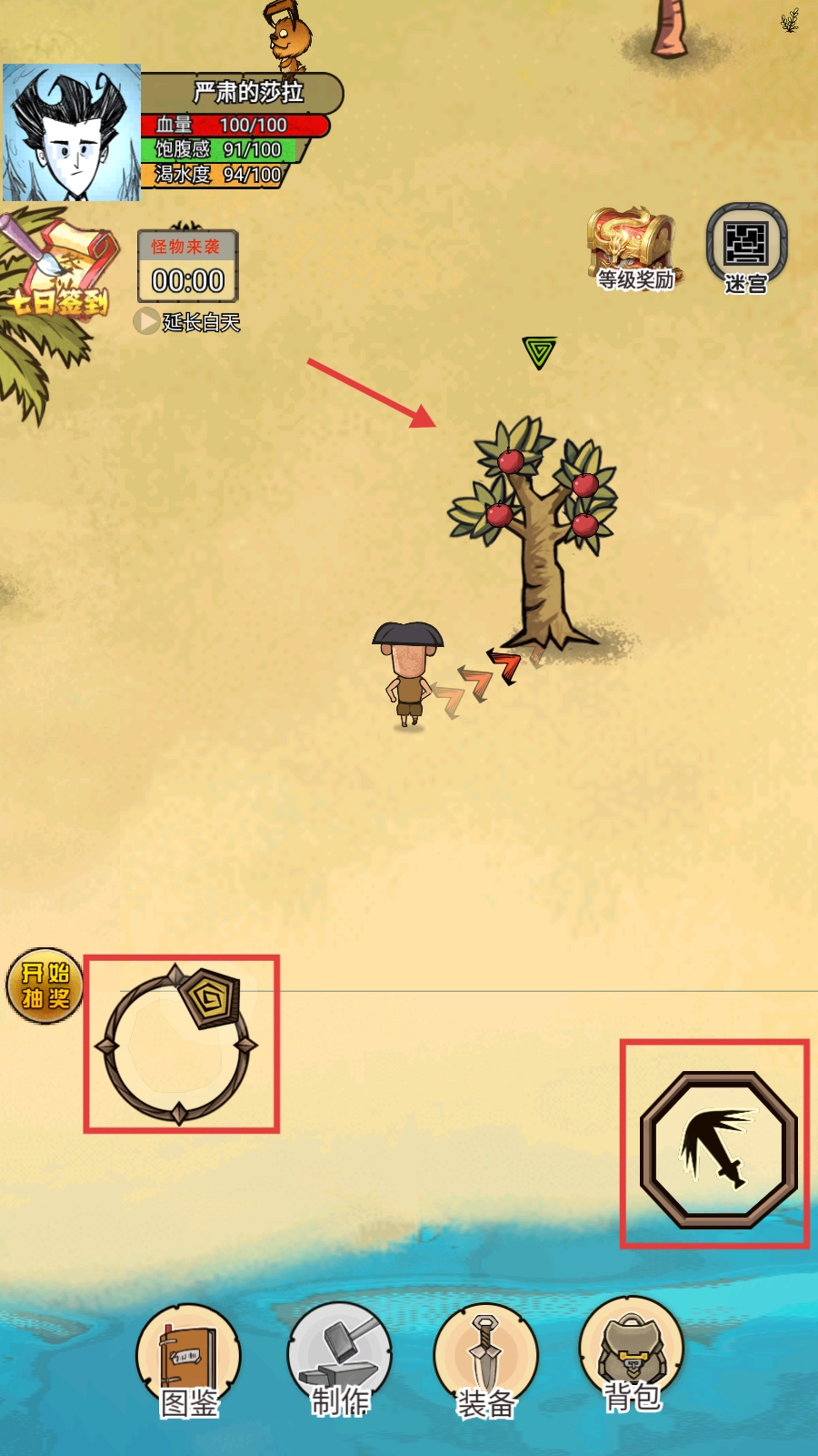 我们能够操控角色靠近果树,利用界面功能来采集苹果,以此为生存打下基础。