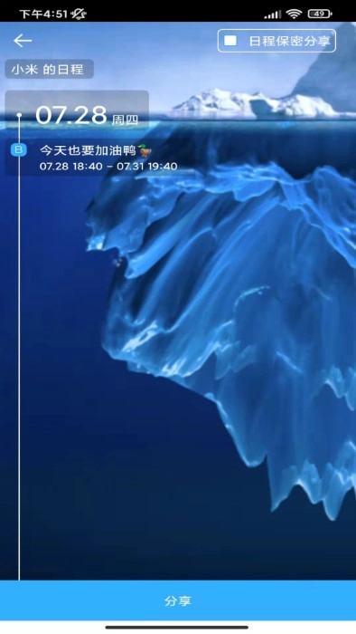 可以选择把日程公开给好友,这样对方就能更容易找到你有空的时间,不用再反复协调时间了。