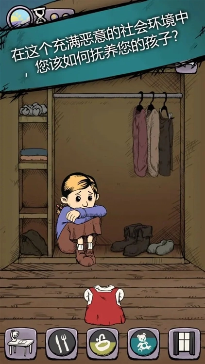 《我的孩子:生命之泉》(MyChildLebensborn)是由Teknopilot发行的反战争模拟养成游戏,玩家需领养“生命之泉儿童”克劳斯或卡琳,在二战后环境中照顾其衣食住行,通过选择影响孩子的感受、人格与世界观,例如孩子因第二个老师补习出现“拒绝接触”“拒绝洗澡吃饭”等创伤反应时,需耗时3次行动机会制作钓竿钓鱼获取食材维持生活,同时禁止孩子上学、写信求助生父并最终搬家,游戏根据真实“生命之泉儿童”经历改编,手绘风格搭配多结局分支,简体中文版免费,旨在以98%基于真实事件的剧情唤醒对战争遗孤困境的思考。