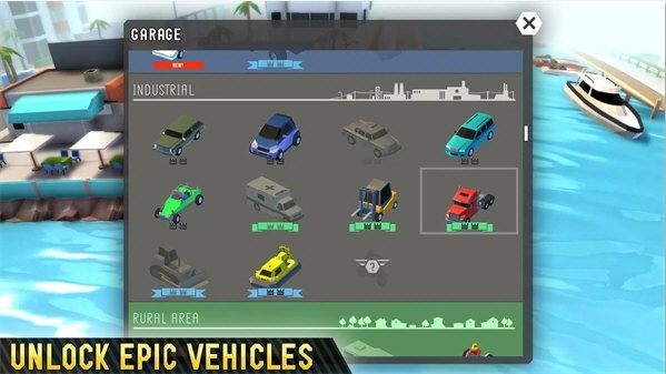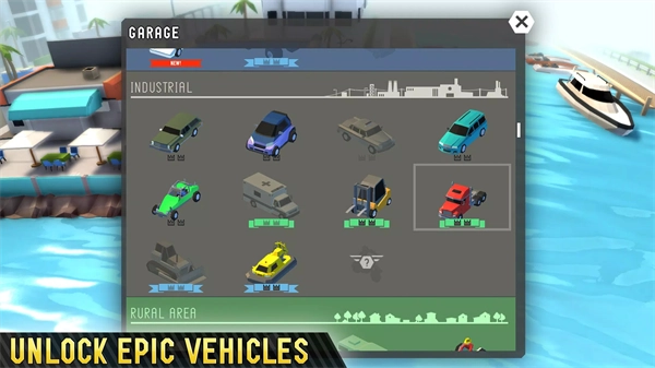4、游戏中还有各种各样的车辆和载具可以通过金币解锁使用,以上就是鲁莽大逃亡2最新版的玩法了。
