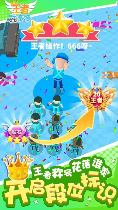 《王者兵多多》是一款休闲益智类竞技游戏,整体采用简约卡通风格设计。在游戏中,玩家将亲手建设专属营地,招募海量士兵,并率领他们开启精彩冒险。你需要持续扩充队伍规模,提升整体实力,最终赢得游戏胜利。对这款游戏感兴趣的玩家千万不要错过,现在就点击开始,开启你的兵多多之旅吧!