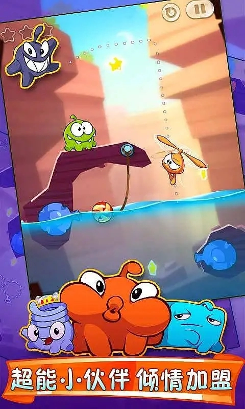 萌趣清新画风采用色彩明快的卡通美术风格,OmNom与伙伴造型Q萌圆润,糖果、星星等元素设计精致,森林、沙漠、城市公园等五大主题场景细节丰富,战斗中糖果滚动、技能触发的特效清爽不杂乱,搭配轻松欢快的背景音乐;核心操作只需滑动屏幕切断绳子,借助重力、摆动等物理原理引导糖果移动,精准落入OmNom口中即可过关,操作零门槛,新手能快速上手,高阶关卡需预判切割时机、规划移动路径;新增7位伙伴,Roto可抓取糖果与OmNom移动,Lick能用舌头搭建临时通道,Blue可制造气流抬升物体,Toss能投掷物品触发机关,Ginger可烧毁障碍物等,不同伙伴技能适配不同关卡难题,灵活搭配能解锁多元解谜思路;拥有168个主线关卡与隐藏关卡,随进度解锁不同场景,每个场景的机关与谜题设计各异,如沙漠的风扇、垃圾场的齿轮滑轮等,关卡难度逐步提升,需收集星星解锁新场景,收集四叶草可开启隐藏关卡。