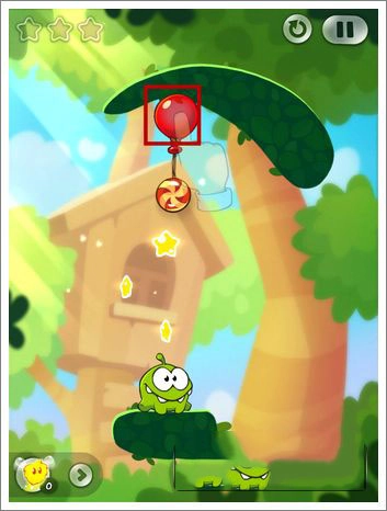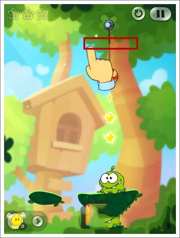 最基础的新手教学关卡,给新手熟悉割绳子的操作方法。玩家只要按照提示,隔断绳子即可!