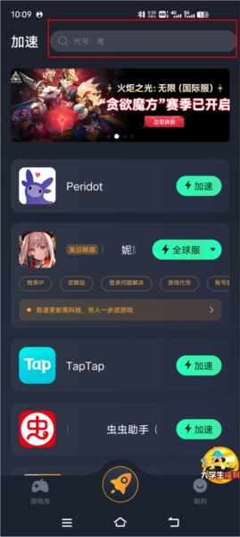 1、打开奇游加速器,点击上方搜索框;