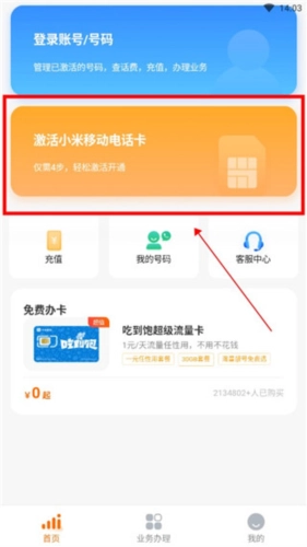 1、打开小米移动App点击“激活电话卡”