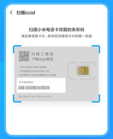 2、扫码卡背面的条形码,开始激活