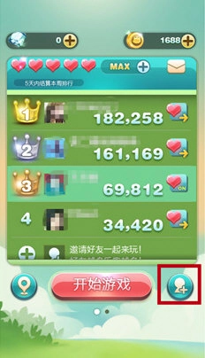 在天天爱消除排行界面中,点击右下角的邀请按钮(图中已用红框标出),即可邀请好友可以获得金币奖励。
