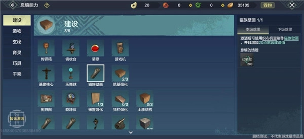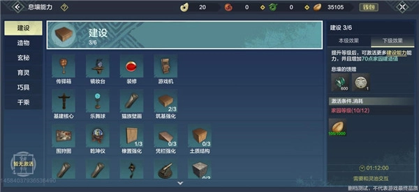 首先面前有六大分支,分别为建设、造物、玄秘、育灵、巧具、千乘,每条分支对应一条玩法,可谓是极大的丰富了生活玩家的可玩性。