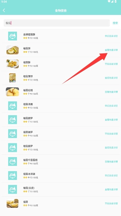从搜索结果列表里挑选出目标食物,点击后就能查看其详细的热量以及营养成分信息。