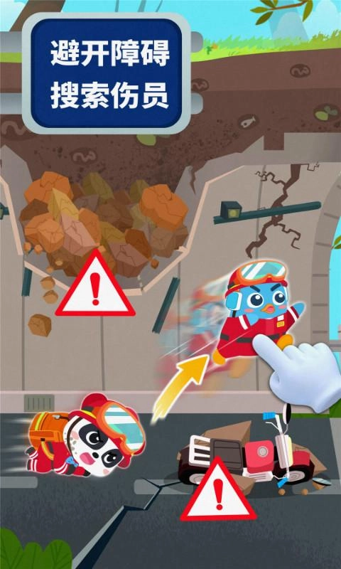通过模拟现实中曾发生的各类地震灾害场景,帮助宝宝掌握地震救援的相关知识,树立安全自救的意识。