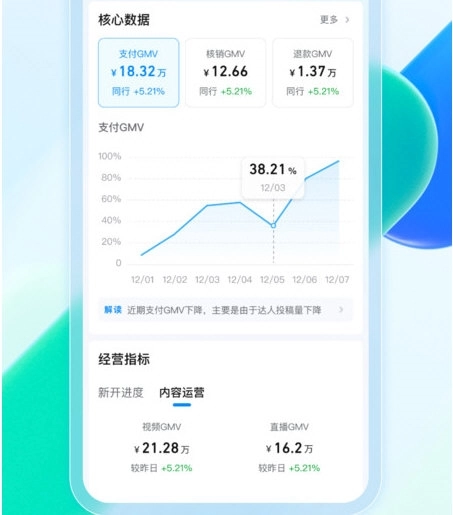 直播、短视频观看量、带货数据、订单交易流水、用户数据分析等内容,都能清晰呈现,助力经营决策一目了然。