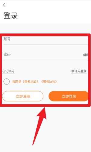 在登录页面,您可以输入账号和密码,也可以选择验证码登录方式;在勾选同意隐私与服务协议后,点击“立即登录”按钮就能完成登录操作。