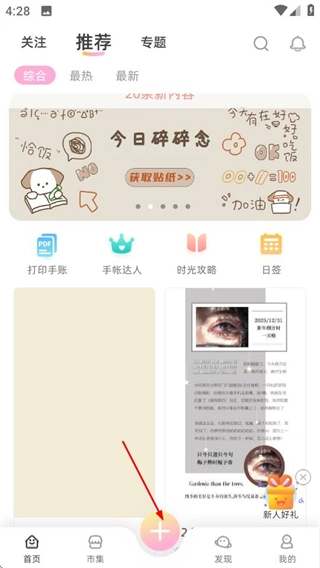 在创作菜单里,点击笔记选项,就能进入图片选择页面。