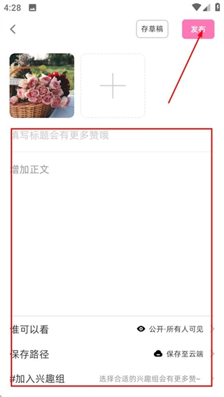 在编辑页面填写好内容,然后点击发布按钮,就能顺利完成笔记的撰写。
