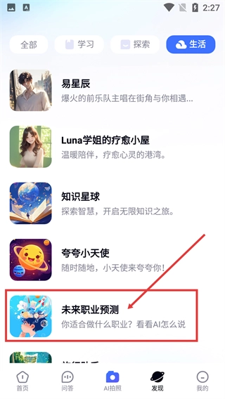 在【生活】标签下,找到【未来职业预测】功能,点击即可进入对应的测试页面。