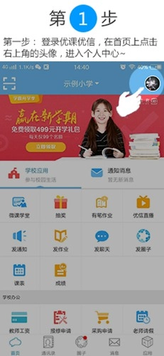 登录优课优信平台后,找到首页右上角的头像图标并点击,即可进入个人中心页面。