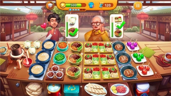 小技巧:此类关卡可以通过连击、双倍道具提高金币产出,快速完成目标。或者也可采取快速上菜策略(不管是否连击,有菜就上),通过提高需求的完成量来增加营业额。