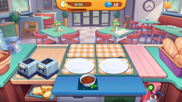 《小镇大厨版》以伦敦小镇皇家奶油鸡餐厅、升级后的披萨店等200+特色主题餐厅为核心场景,通过制作英式全早餐、摩洛哥牛肉塔吉锅等200多种菜肴,结合防护锅(防烧焦)、有机食材(金币翻倍)等强力道具,以时间管理为核心玩法,玩家需完成金币(目标营收)、盘子(点菜数量)、爱心(顾客心情值≥爱心)、连连上菜(5连额外+20金币)等关卡目标,通过升级食材/厨具提升效率,解锁新关卡与全球城市(如印尼巴厘岛、摩洛哥),参与感恩节、圣诞节等限时节日活动(获专属顾客服装),并可通过大厨烹饪日记回忆系统回顾往期活动,购买黄金券完成赛季烹饪挑战收集厨师勋章,最终成长为世界明星厨师。