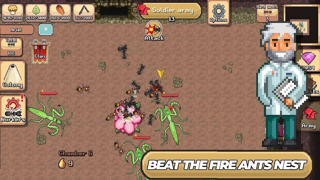 3、率领蚂蚁战士,与强大的敌对生物展开激烈对战,争夺生存空间。