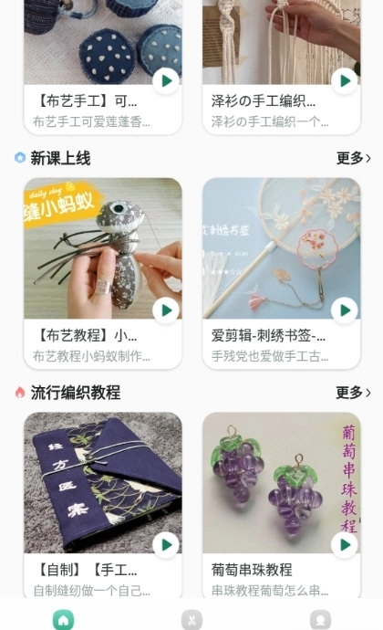 3、手工活精心设计了每日精选推荐与新课上线板块,平台拥有海量手工资源,能帮助您更精准地查询到想要的课程。