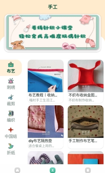 4、每日分享一个手工小技巧,涵盖布艺等多种手工类别,用户可收藏自己的手工作品以便随时学习。