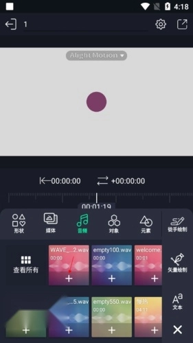 am剪辑支持图层分组、元素保存复用、视觉效果和色彩校正、所有设置的关键帧动画、动画缓动(预设或自定义时间曲线)、基于速度的运动模糊、多层图形视频音频、矢量和位图(手机直接编辑矢量)、导出MP4或GIF、纯色和渐变填充、边框和阴影效果。