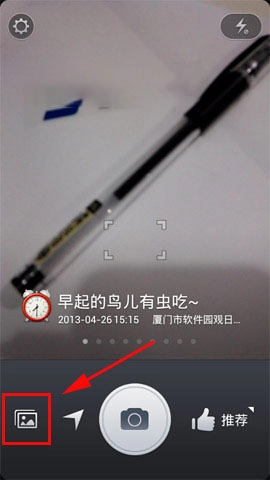 5、腾讯水印相机的功能不止于拍照时添加水印,它同样支持为用户手机相册里的图片添加水印。用户只需点击界面左下方的相册按钮进入,就能对图库及文档中的图片进行选择操作。