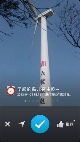 3、笔者随机选了一款水印来给大家做演示:用户若想修改某部分文字,只需轻点对应位置就能进入编辑界面。我对下图水印的文字、心情及地理位置信息进行了编辑,大家可以参考一下。