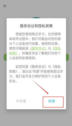 首先点击同意按钮,顺利进入应用界面,为接下来的学习做好准备,保持积极的学习状态。