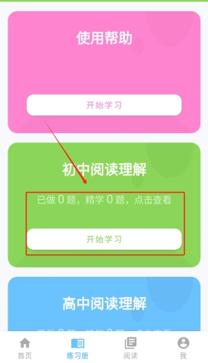 在主界面选定练习册后,即可开启各类题型的练习,借此能及时强化已学知识,提升解题能力与应试技巧。