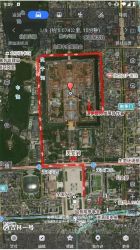 2、把十字架挪到起点位置,点击屏幕底部的按钮启动测距,在测距的时候,每一段的长度和方位角都会在地图上显示出来。