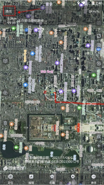 4、然后就跟着路线前往目的地即可,若中途想退出点击左上角退出功能即可