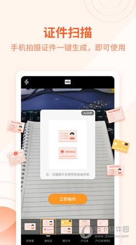 【证件扫描与制作】可识别扫描身份证、银行卡、护照等各类证件,按1:1比例生成电子复印件;具备专业证件照制作功能,支持红底、白底、蓝底等背景选择,宝宝照、学生照、工作照、护照签证照等多种类型,足不出户即可完成制作。