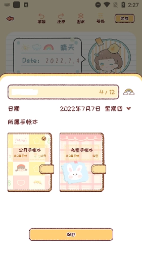 5、完成全部的DIY操作后,我们点击保存可以存入自己所创建的手账本中
