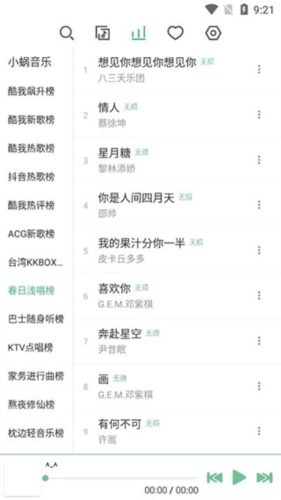 各种类型的排行榜,根据你的兴趣自由选择试听,还可在线进行。