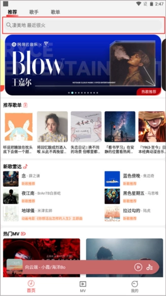 1、打开软件并进入【首页】,你就可以开始在搜索框中输入你想要听的歌曲。