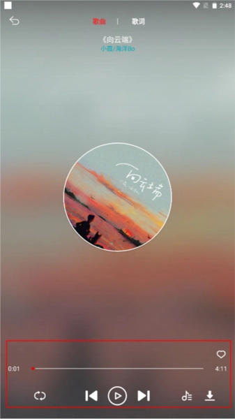 3、在播放界面中你可以查看歌词,也可以收藏或音乐。