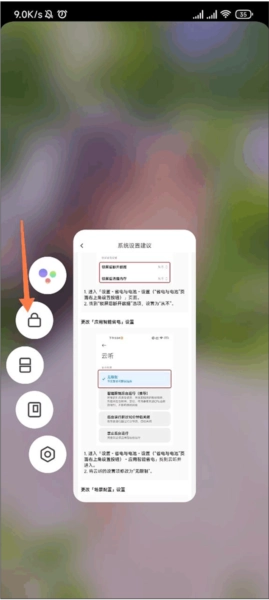 我们先打开手机的应用后台任务界面,长按“云听”应用,待屏幕侧边弹出一系列功能选项后,点击那个锁形图标,就能完成对该应用的上锁操作了。