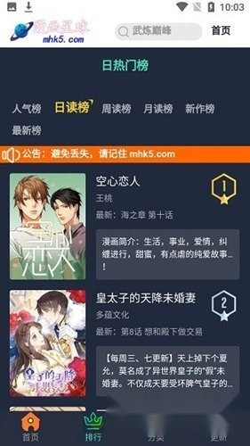 3、正版漫画:提供正版漫画资源,保证漫画的版权合法性。用户可以放心阅读漫画,支持漫画作者和出版商的合法权益。