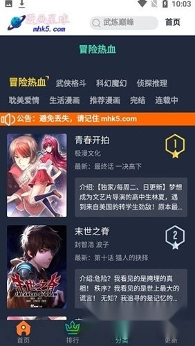 提供热门漫画推荐、涵盖爱情冒险等多种题材漫画作品、提供正版漫画资源。