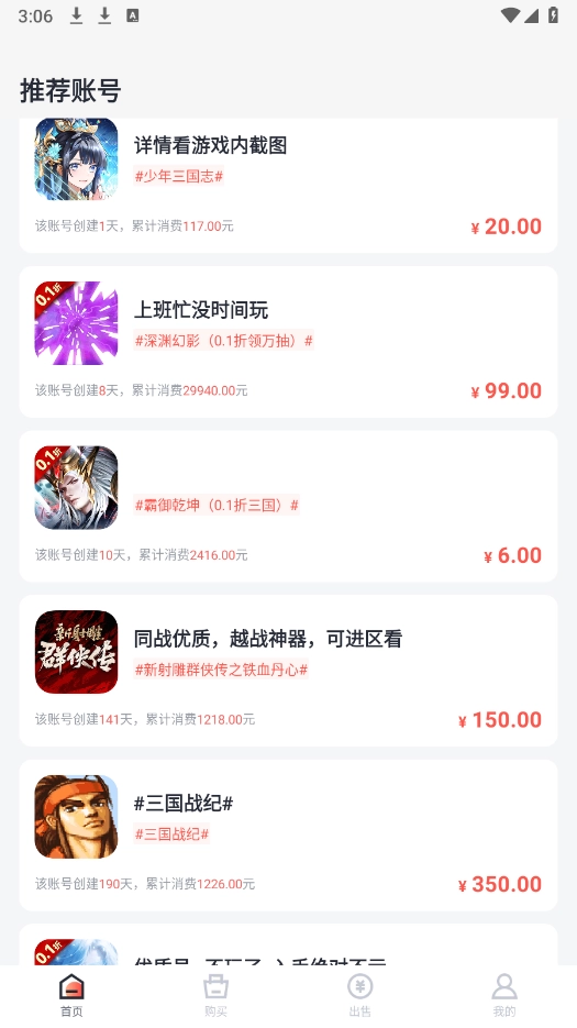 玩家能以超划算的价格买到高价值游戏账号,是闲置账号快速出手的必备平台。