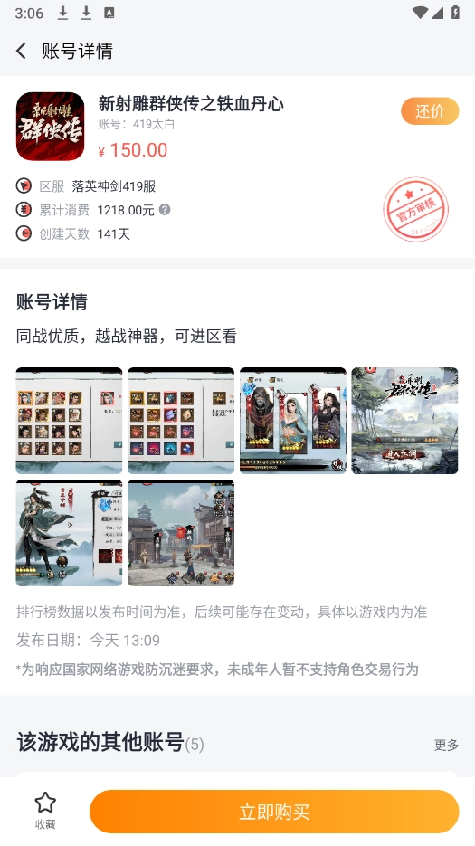 消费金额满6元的账号允许在平台进行售卖,不过处于删档付费测试阶段的游戏暂不支持此项功能。