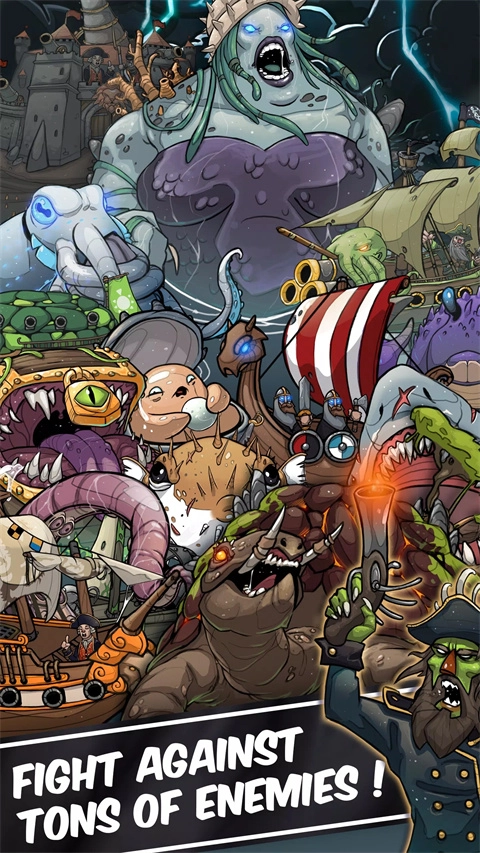 1、招募船员,其中包含多达25个不同的英雄,有忧心忡忡的海盗、技艺娴熟的剑士、鲨人、亡灵、巫毒巫婆、人鹦鹉……抓啦!