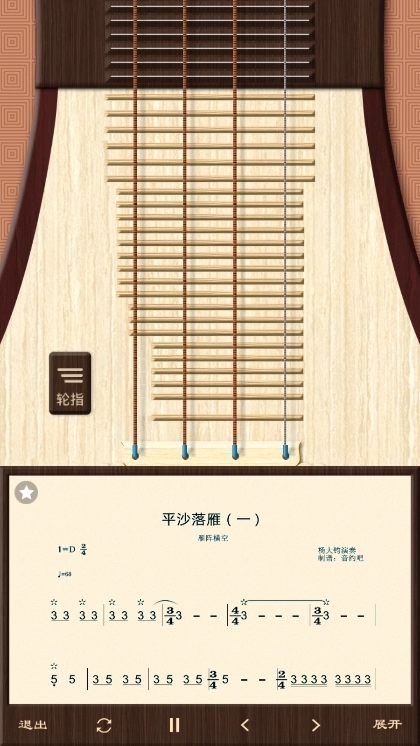 指法练习时,可借助“轮指功能”来模拟摇指的音效。需要注意的是,右手要佩戴赛璐珞(或玳瑁材质)的假指甲进行拨弦,切勿直接用自身指甲弹奏,以防损伤屏幕。