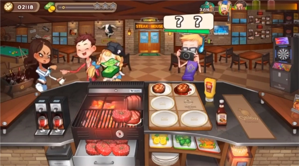 4、在烹饪冒险游戏里,玩家制作牛排时得留意制作过程,顾客想要的熟度能从红条框里查看,而且每位客人要的牛排都不一样,熟度不同,玩家就得准确制作对应的食物,不然客人是不会接受的。