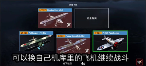 4、即使你的飞机给打落,可以换自己机库里的飞机继续战斗。