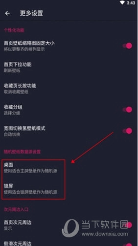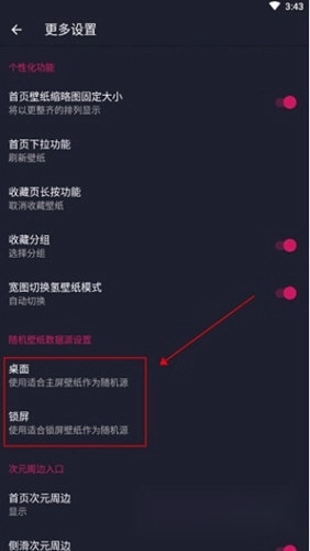 3、在更多设置里,能找到“随机壁纸数据原始设置”,该设置下有“主屏幕”和“锁屏”两个选项,可依据个人需求选择。比如,桌面壁纸可以直接选用软件库的资源,也能使用自己收集的本地资源。