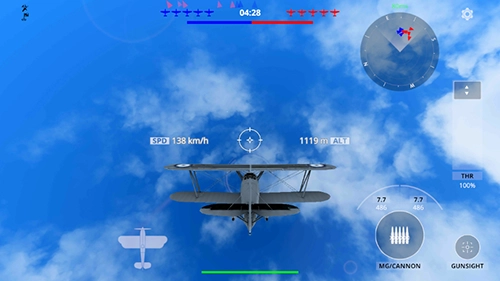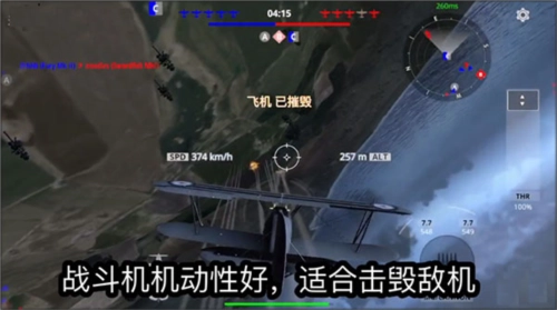 3、灵活运用不同战机与对手展开搏斗,发挥你的强大空战技巧,运用各种机动将对手玩弄于股掌之中;