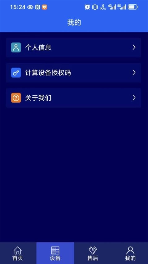 在个人中心里,你可以进行查看个人信息、计算设备授权码等操作。